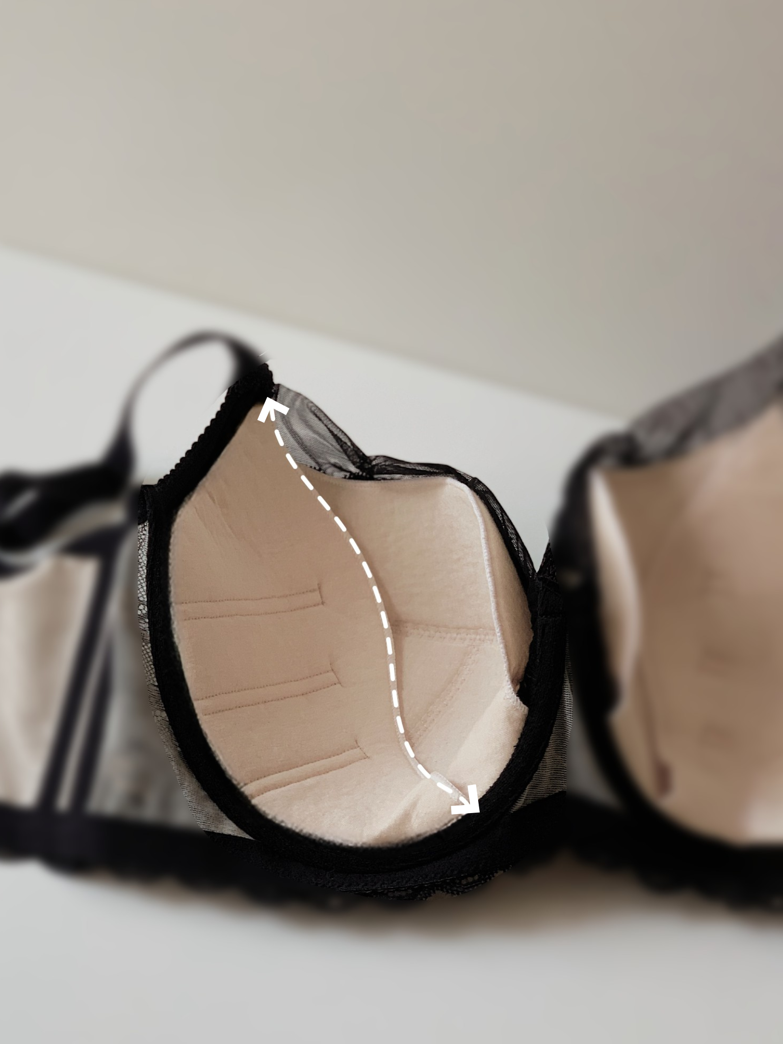 一開始,市面上很多內衣的結構線條,都是「直線往下」的設計。但胸部本身是柔軟、有立體弧度的,當直線結構遇到柔軟的胸型時,很容易產生以下問題: