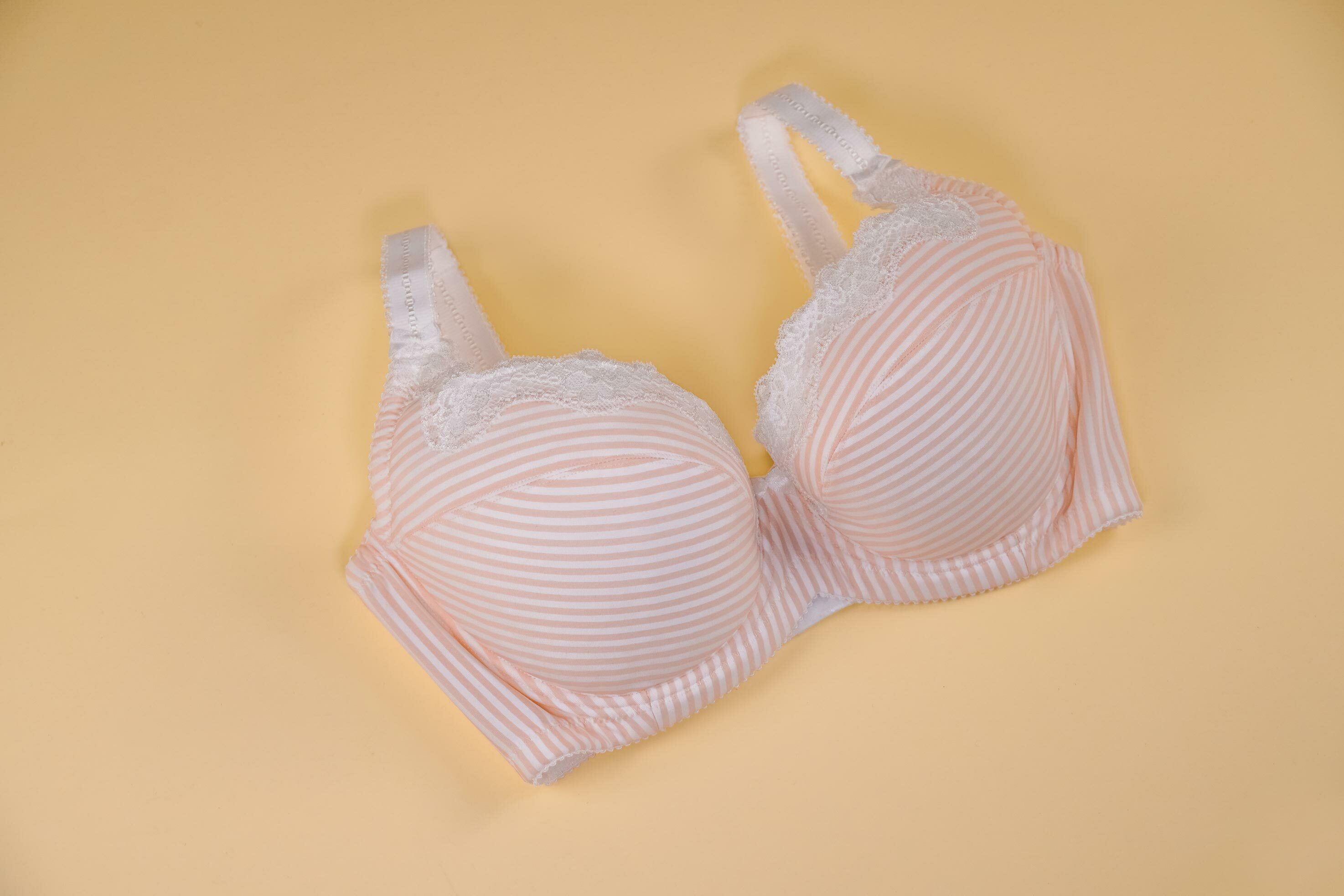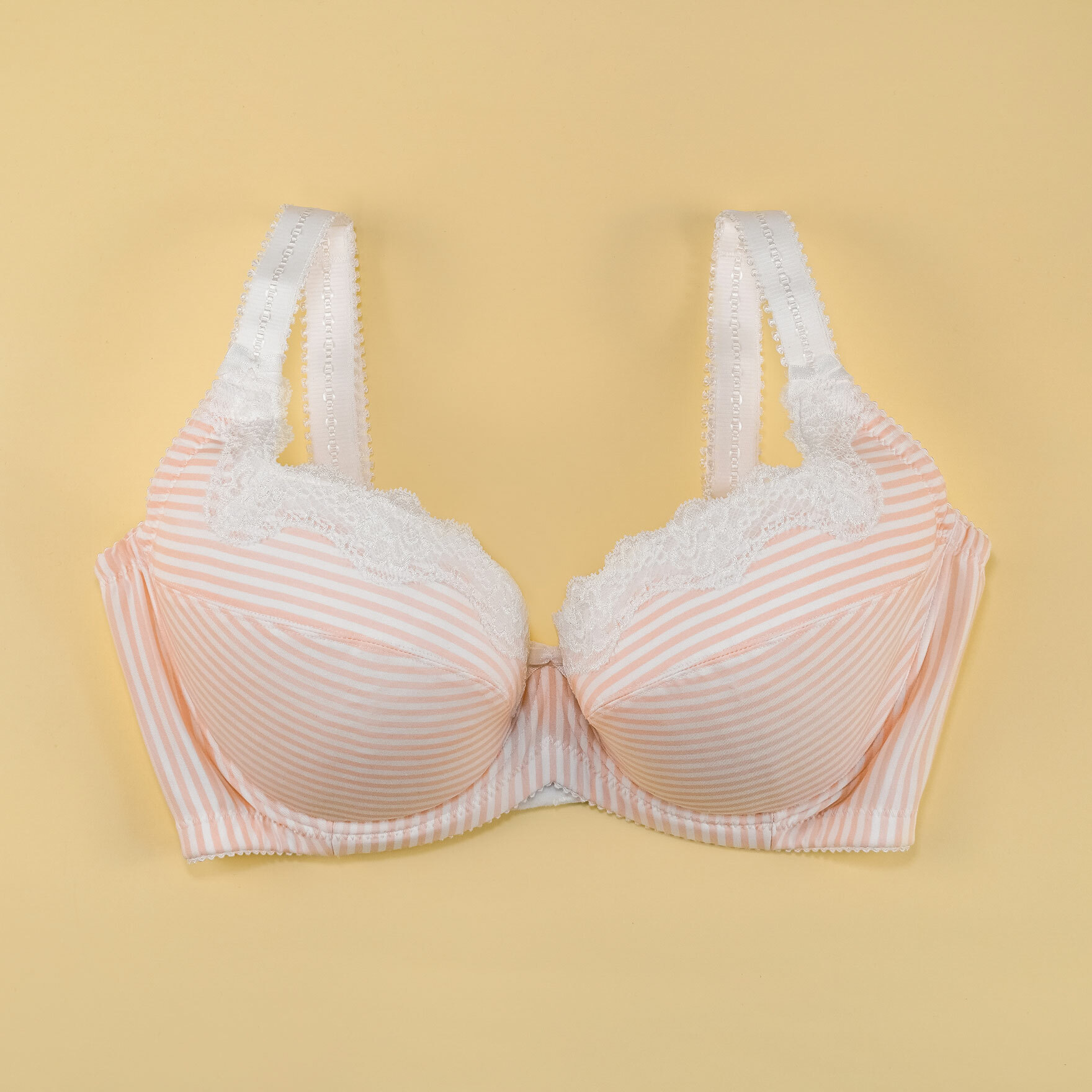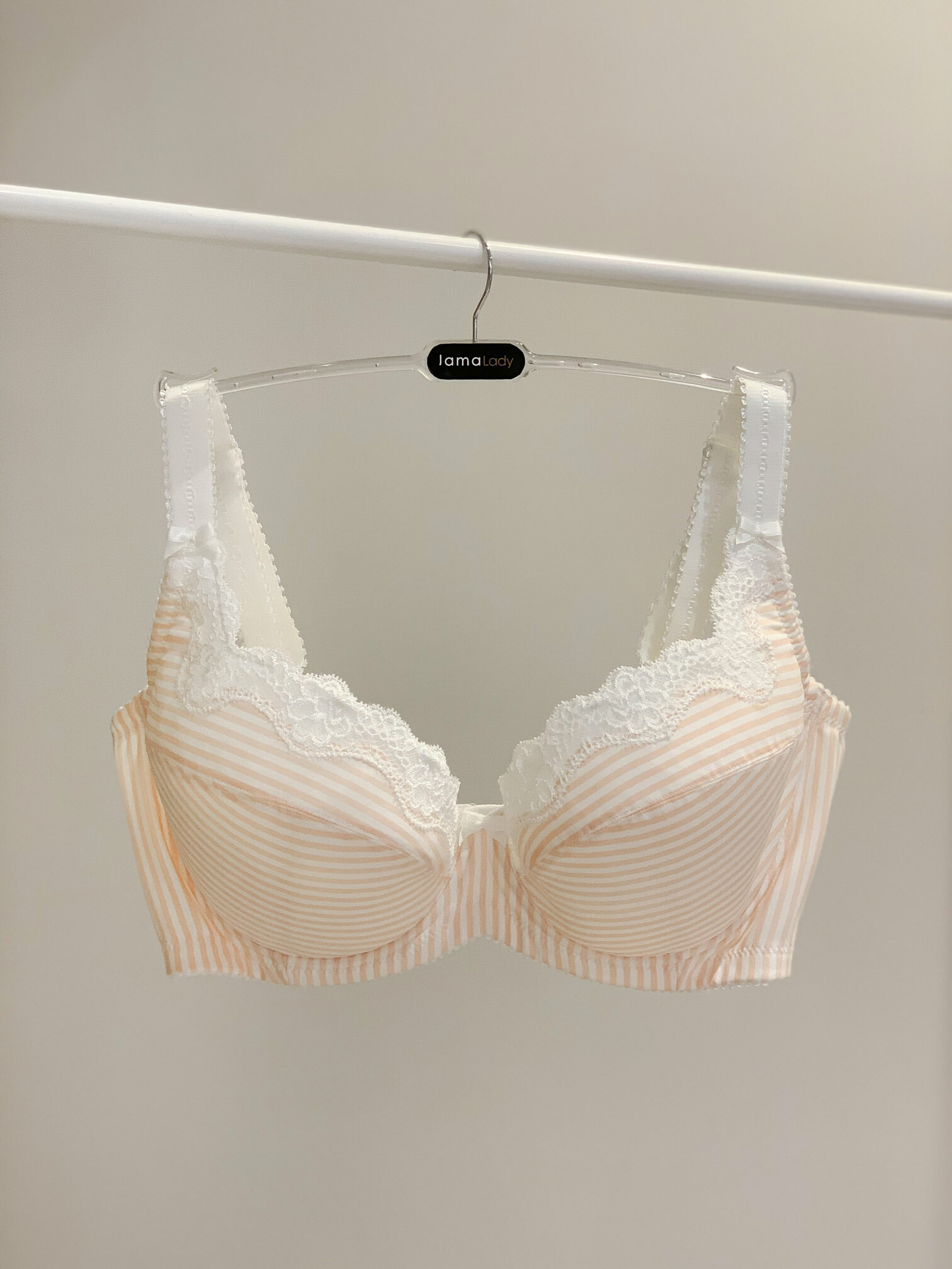鋼圈系列 粉桔條紋印花 白蕾絲